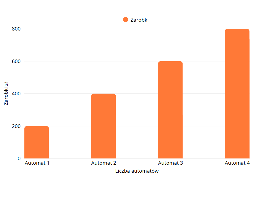 Jeden automat kosztuje 350zł i przynosi około 200zł miesięcznie w zależności od lokalizacji.